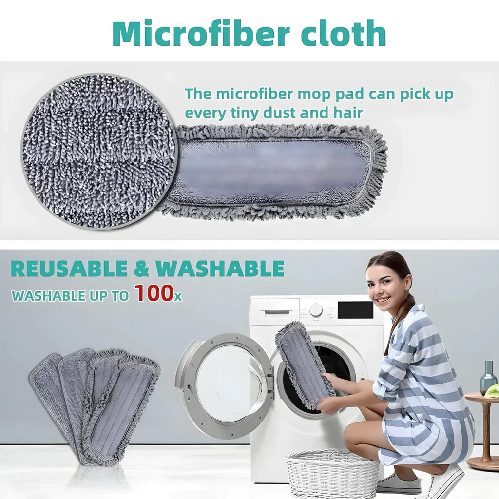 - Sturdy aluminum handle and high-quality microfiber floor mop heads that are easily washable.