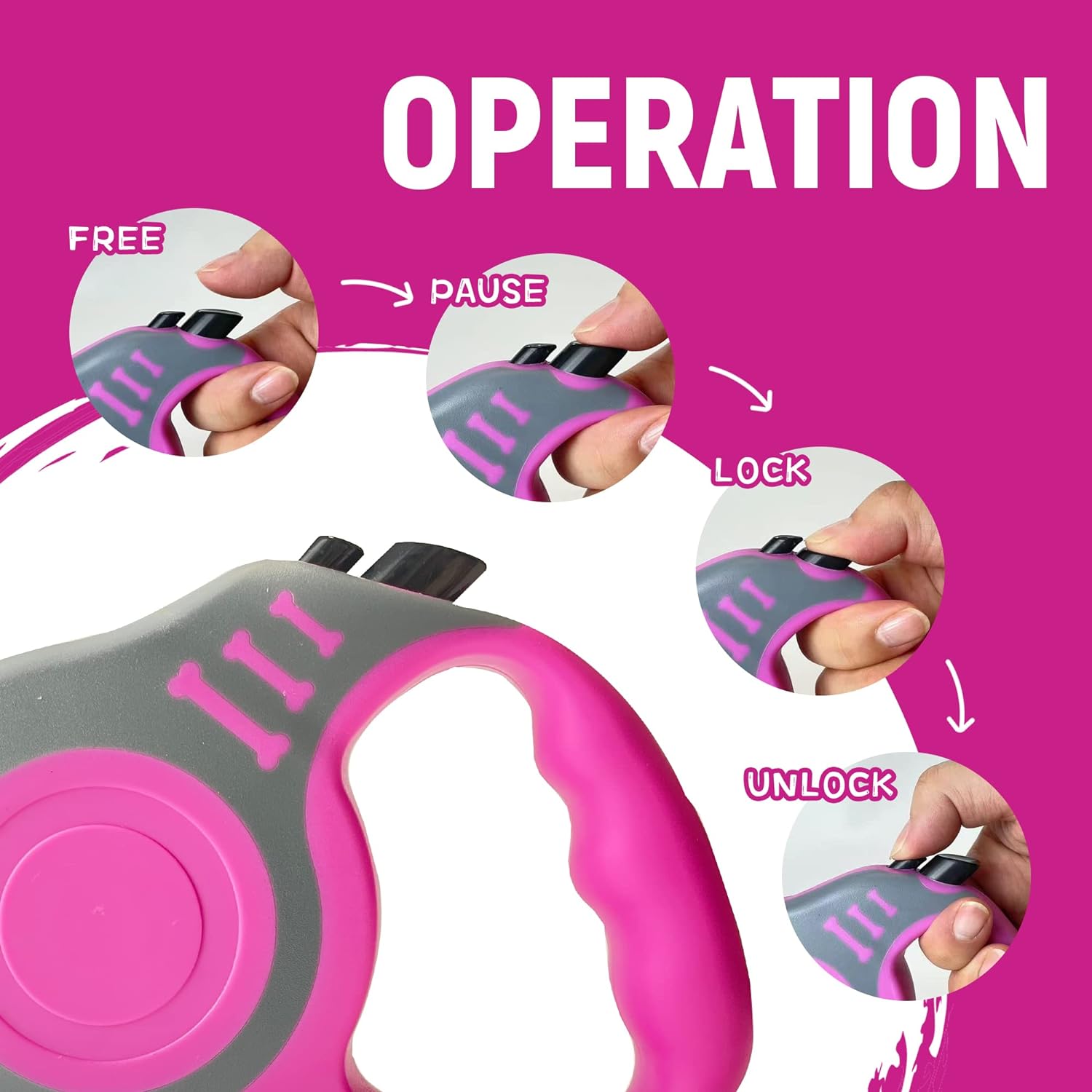 - Automatic Telescopic Design: This retractable dog leash offers an automatic telescopic mechanism that allows your furry friend to explore with ease. Choose between 10 or 16 feet of freedom, giving your pet the space they need.
