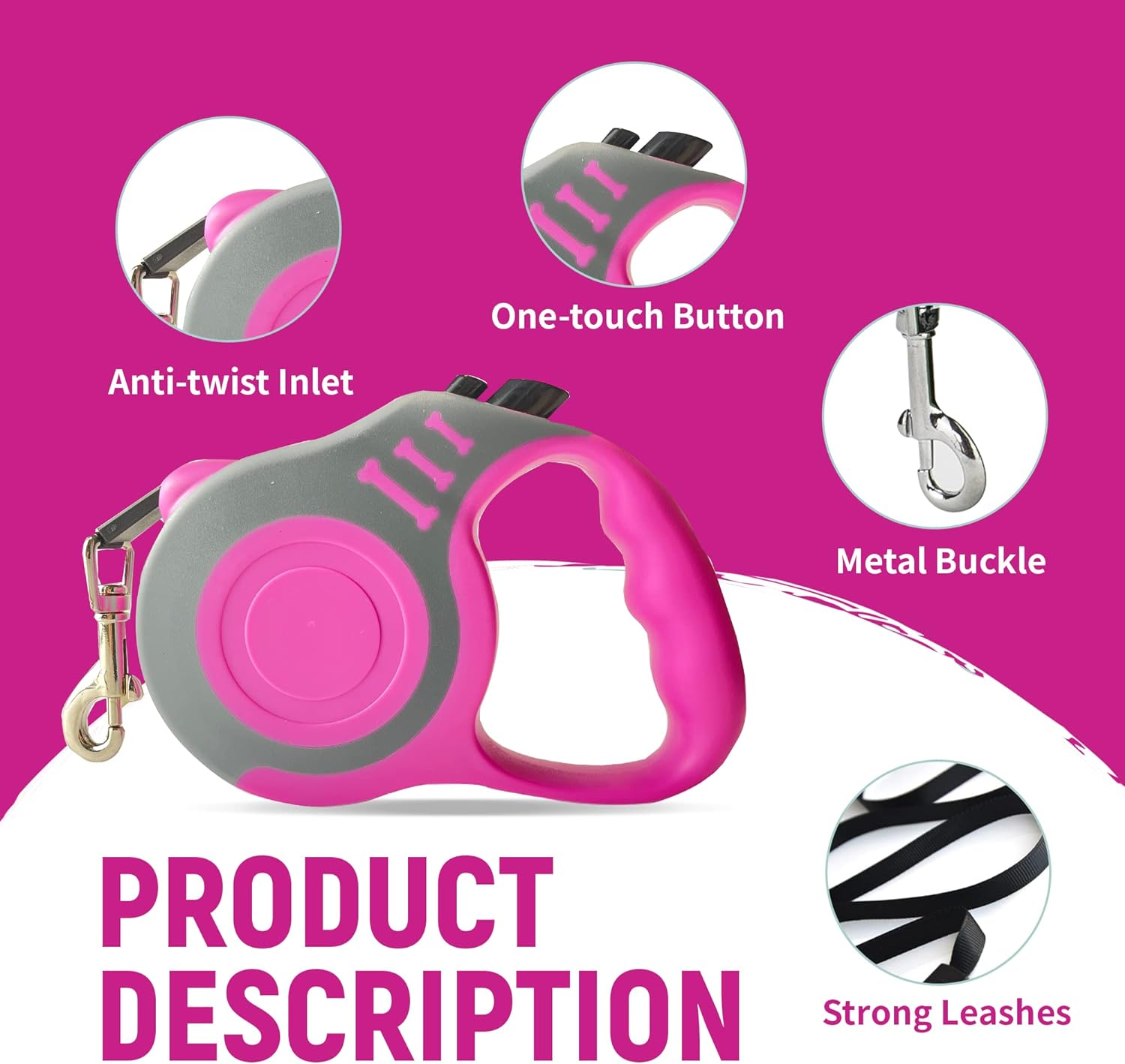 - Versatility: Suitable for both small and medium-sized dogs, this retractable dog leash offers flexibility in use, making it a great choice for pet owners with different dog sizes.